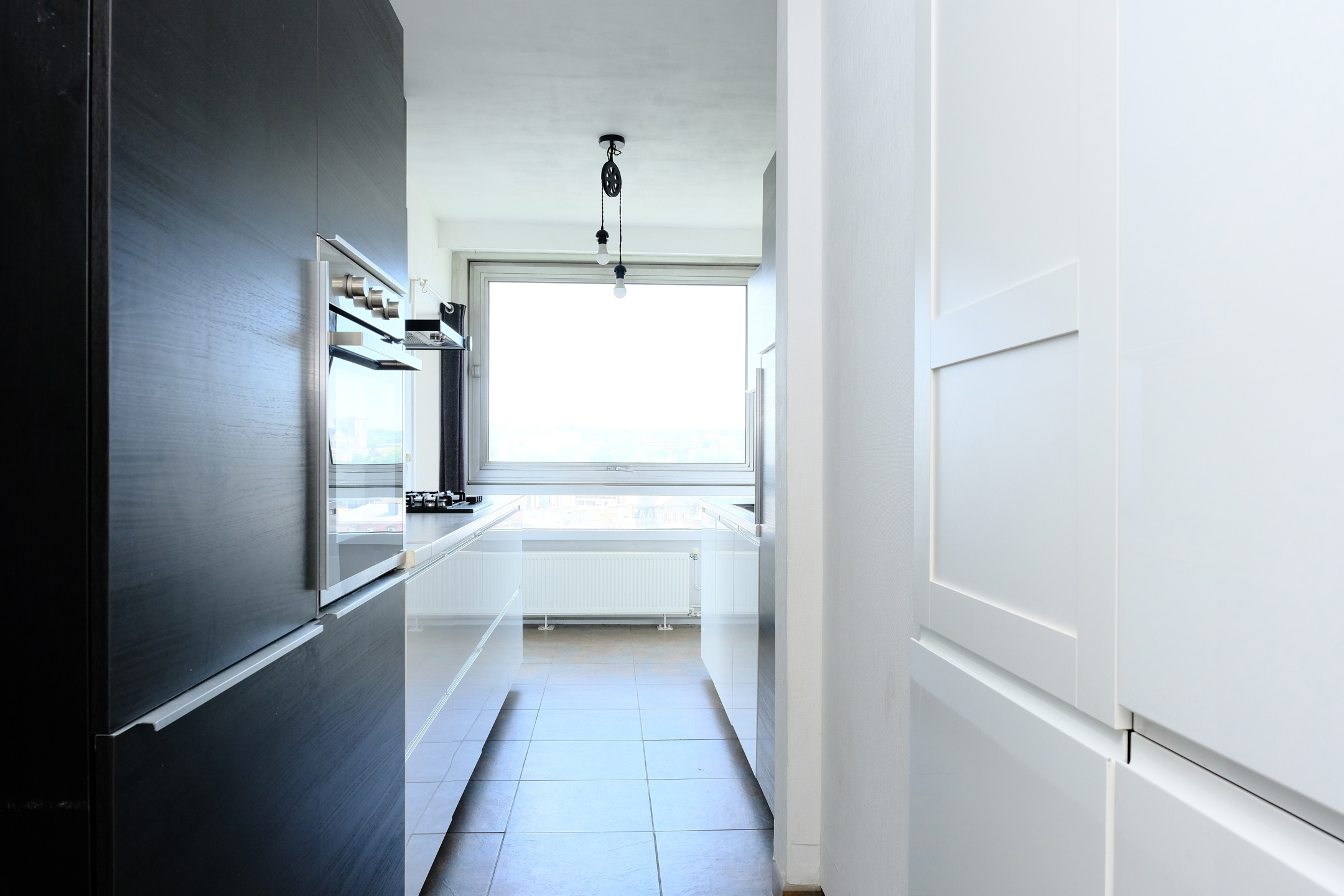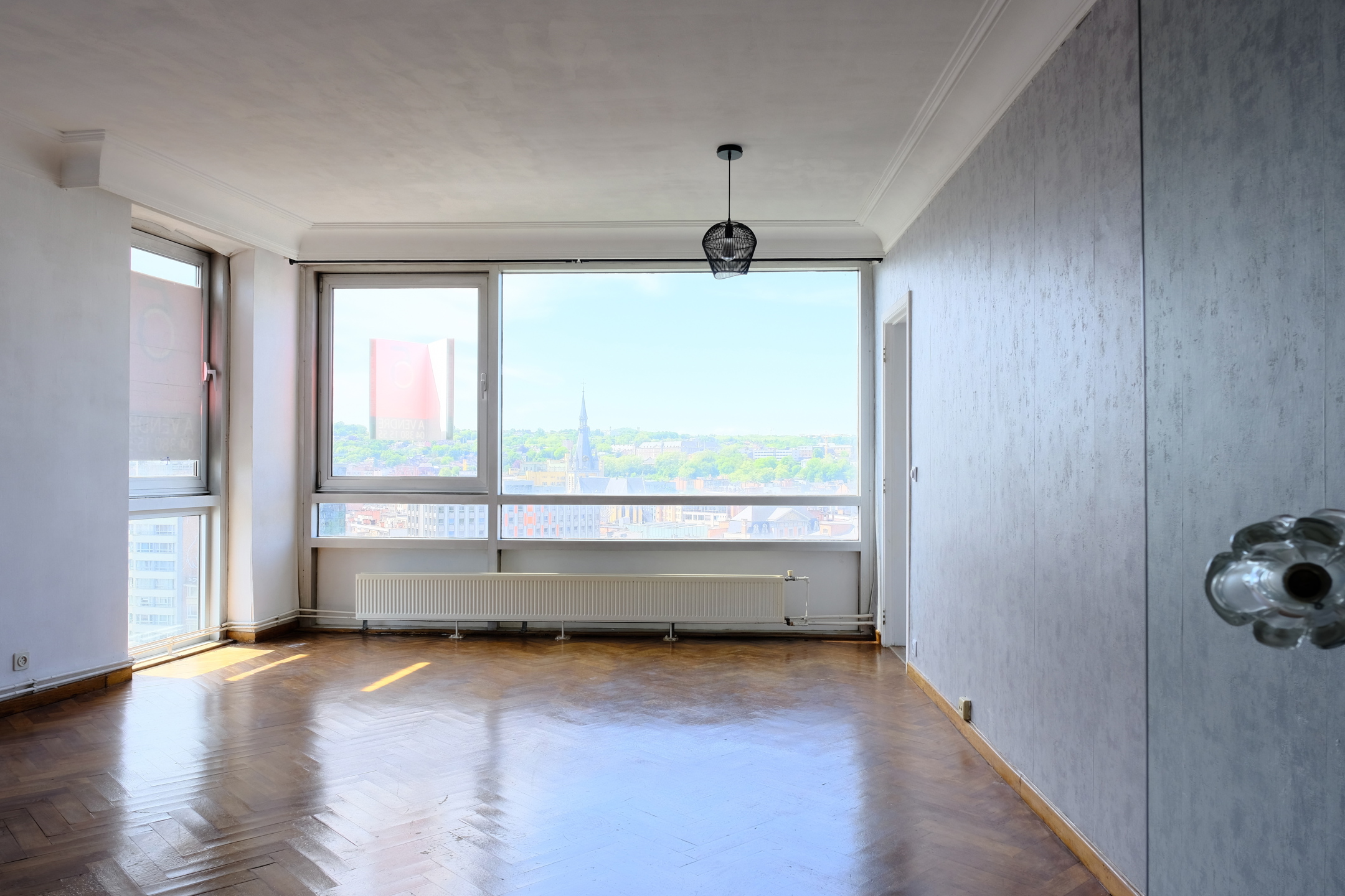 Dans un immeuble de standing au quatorzième étage avec ascenseur, il offre une vue panoramique sur la Meuse et la ville de liège.