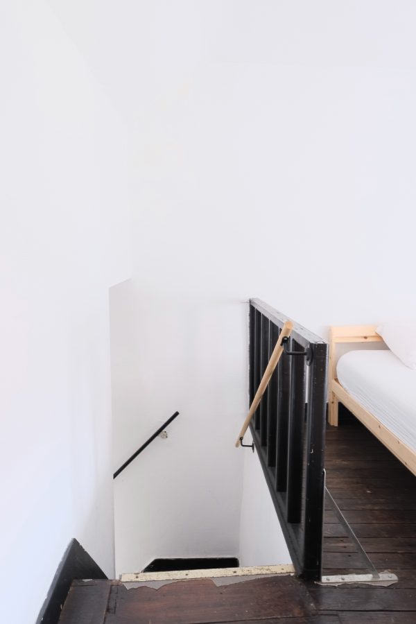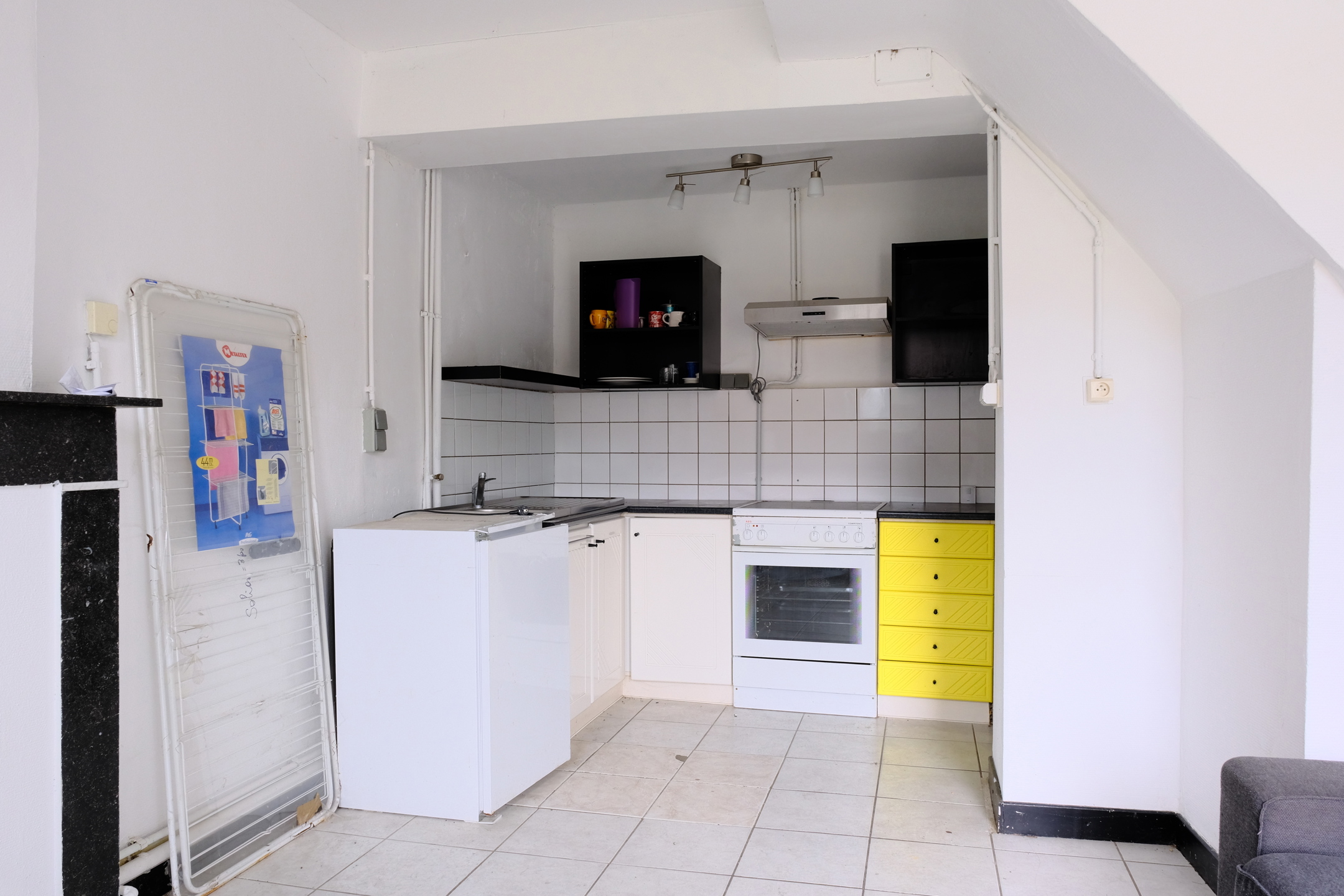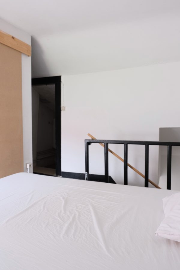 Au rez-de-chaussée, l’entrée se fait directement dans la pièce de vie avec son coin cuisine et un rangement.